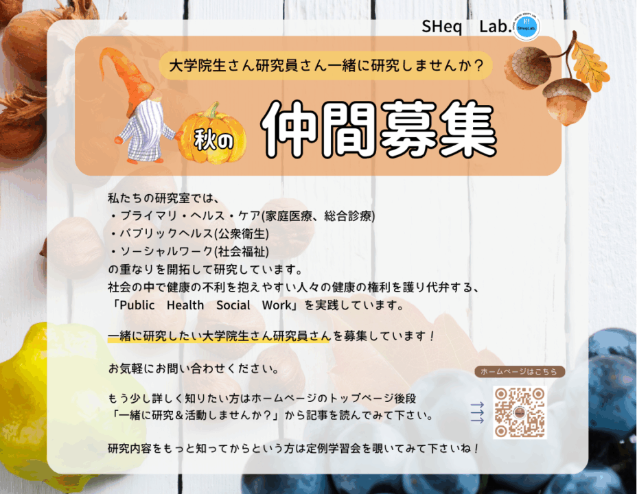 ▼メニュー ▼新着 ▼西岡大輔・SHeqLab. ▼研究テーマ ▼オンライン学習会 ▼仲間募集 ▼PICK UP ▼実践例募集