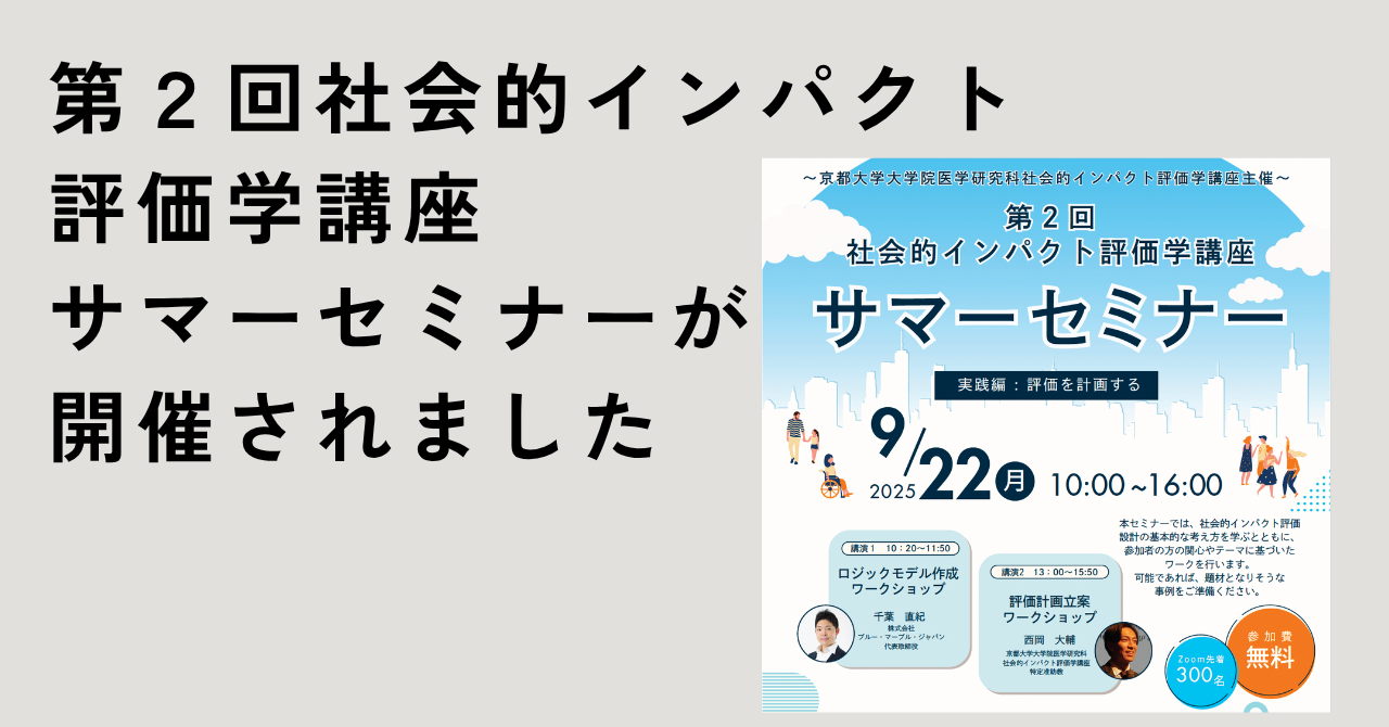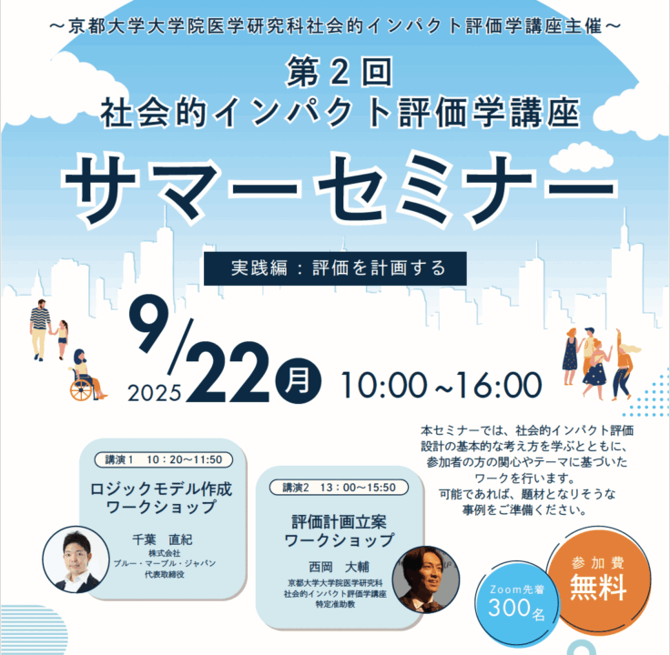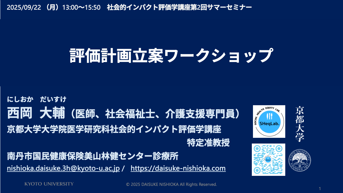 9月22日、西岡が所属する京都大学大学院医学研究科 社会的インパクト評価学講座の第2回サマーセミナーが開催されました。