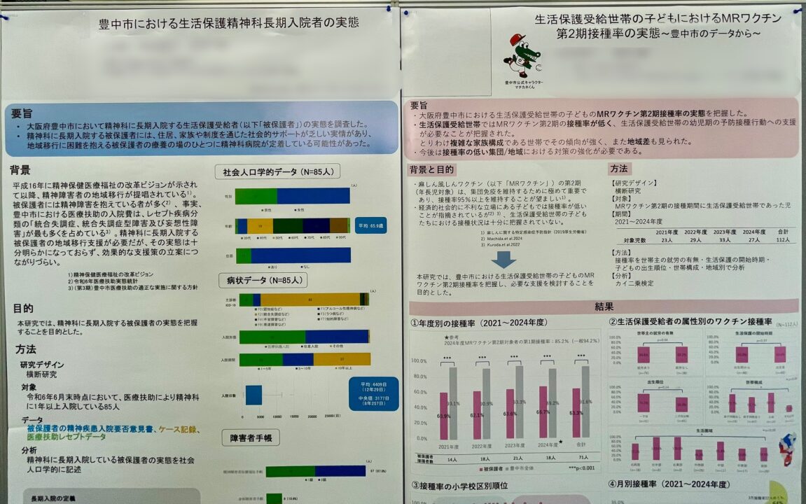 NEW!【発表】日本公衆衛生学会で豊中市との共同研究成果を発表しました ソーシャルワーク 2025.11.04 私が共同研究をしている豊中市福祉事務所の保健師、精神保健福祉士の方に分析結果をまとめていただき、学会発表してもらいました!会場ではたくさんご注目&ご質問もいただけてとても貴重な機会となりました。 今後はいずれも論文化を予定していますので、一緒にがんばろうと思います! 西岡 大輔 (にしおか だいすけ)
